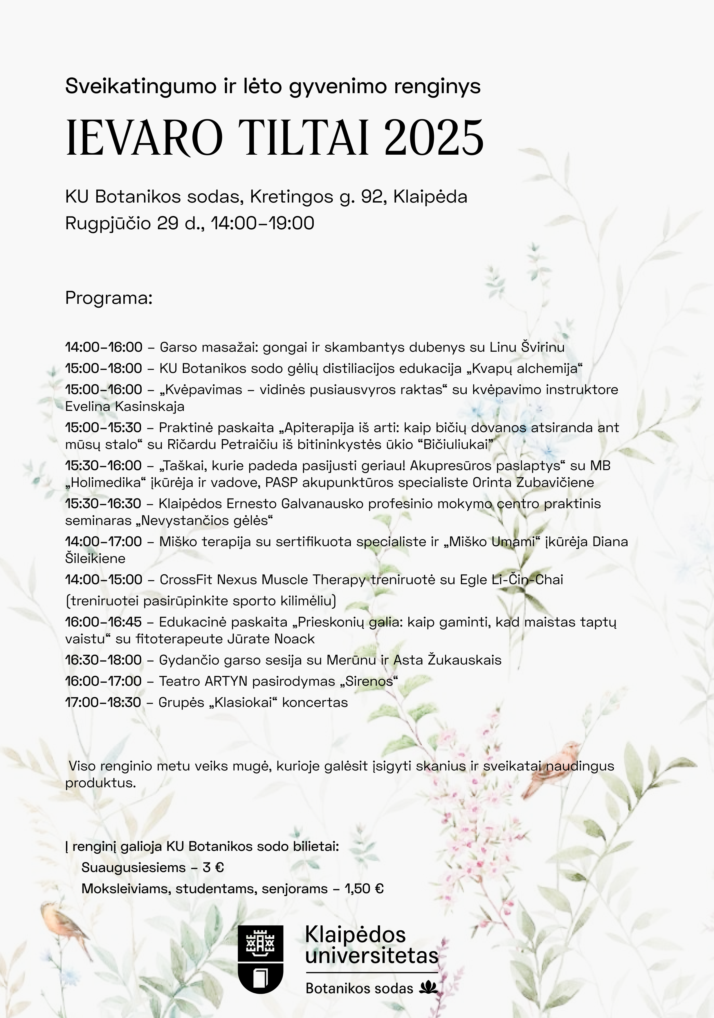 Kviečiame paskutinį vasaros penktadienį praleisti Klaipėdos universiteto botanikos sode.