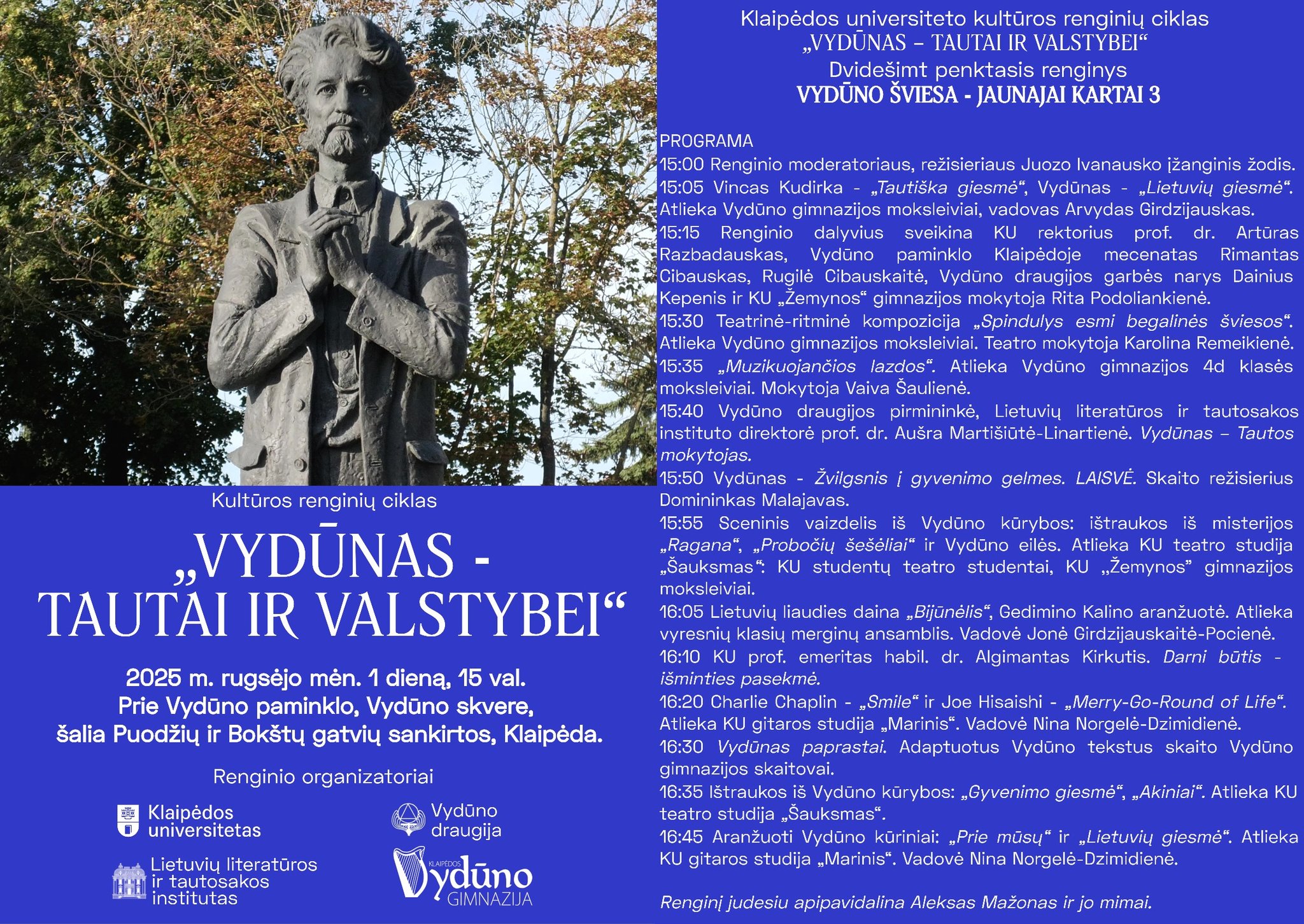 Kultūros renginių ciklo „Vydūnas – tautai ir valstybei“ dvidešimt penktasis renginys „Vydūno šviesa – jaunajai kartai III“, skirtas paminėti Vydūno metus bei Mokslo ir žinių dieną.